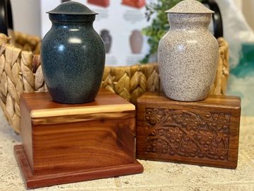 We work with Pet Angel Cremation to make sure your pet's remains are handled with respect and care. Your pet is picked up and remains are delivered back to our clinic by a personal driver. There are a variety of options including standard urns or upgrades with personalized mementos.