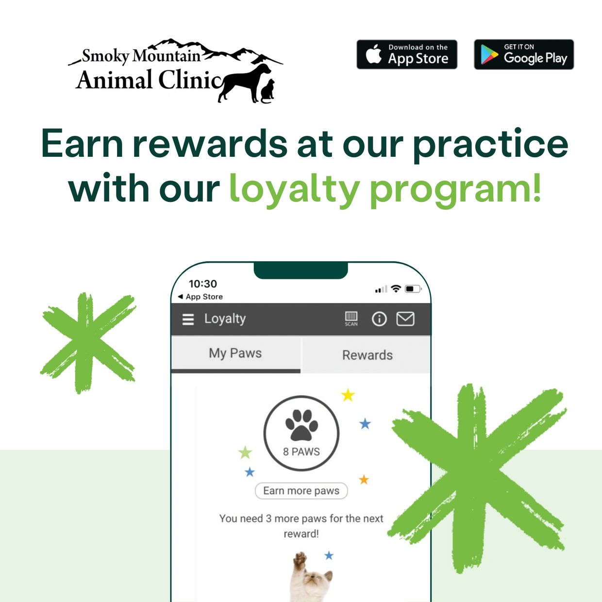 Our Smoky Mountain Animal Clinic Rewards App lets you