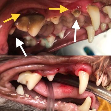 This requires your pet to be put under anesthesia and involves scaling and polishing away any tartar above and below the gum line.